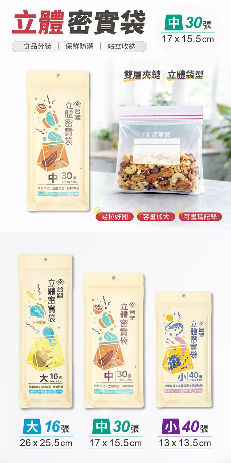 台塑 立體 密實袋 (中) (17*15.5cm) (30張) X 50包 免運費